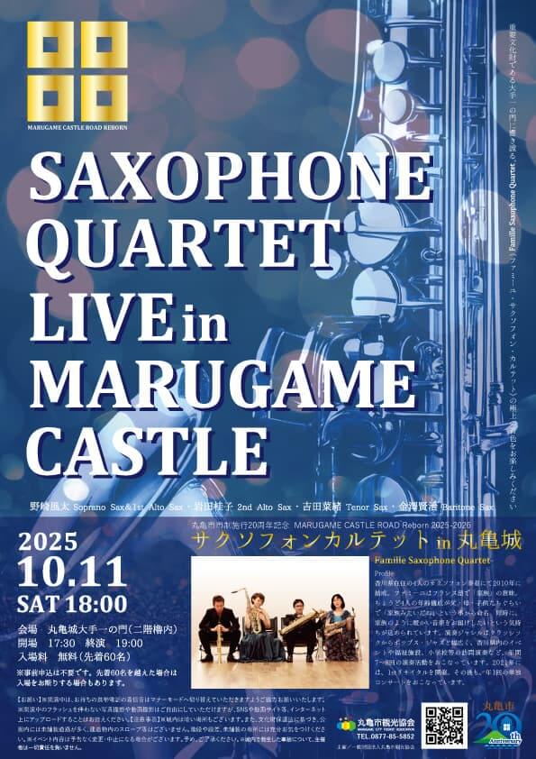 SAXOPHONE QUARTET LIVE in 丸亀城は、10月22日(日)に行われる無料のライブです。