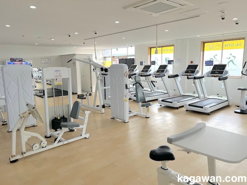 | マシン | トレッドミル×3 バイク×1 アブベンチ×1 レッグプレス×1 ラットプルダウン×1 チェストプレス×1 ショルダープレス×1 アダクション/アブダクション×1 |