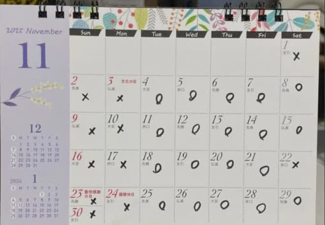 具体的には、以下の日が2025年11月の休業日となります。