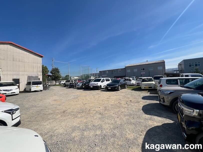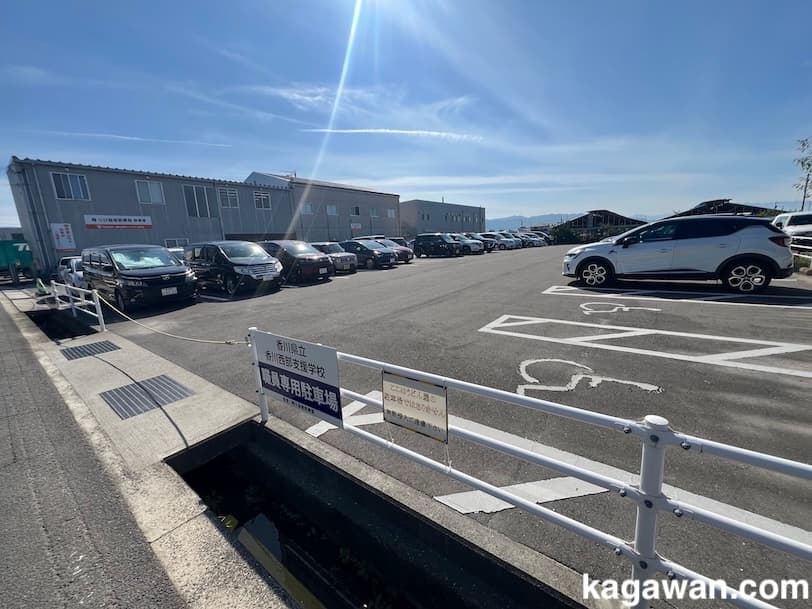 カマ喜riの隣には、コンクリート舗装された駐車場がありますが、ここは香川西武支援学校の職員専用駐車場なので利用してはいけません。