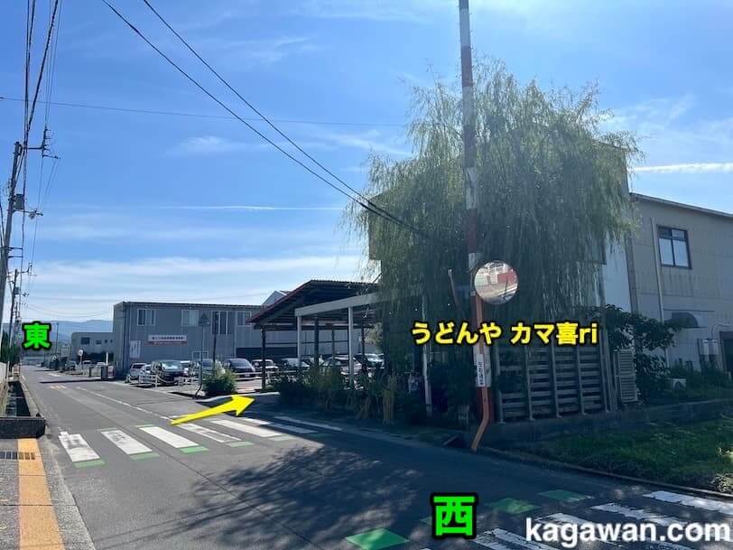 うどんや カマ喜riの駐車場は、敷地の奥側にあります。