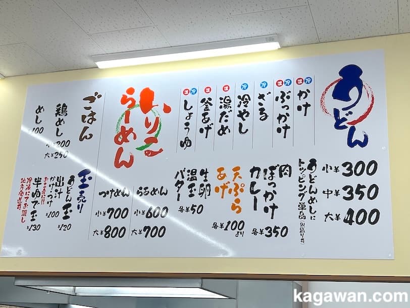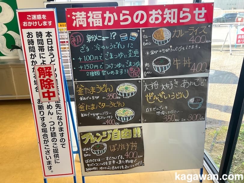 高松満福でも、丸亀の店舗の時と同じメニューを食べることができます。