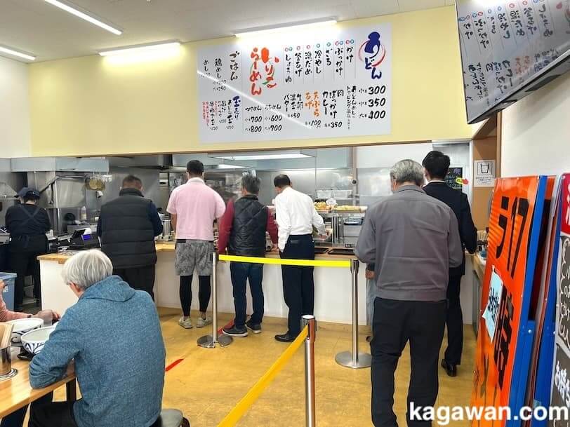すぐに提供できるうどんがない時は、会計後に番号札を渡されて、席で少し待つ必要があります。