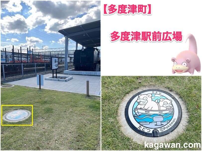 多度津町のヤドンのマンホールは、JR多度津駅の東側にある多度津町駅前広場にあります。